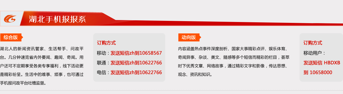 掌閱天下,心知湖北。歡迎訂閱湖北手機(jī)報(bào),發(fā)送ZH到10622766即可訂閱,每月僅3元。